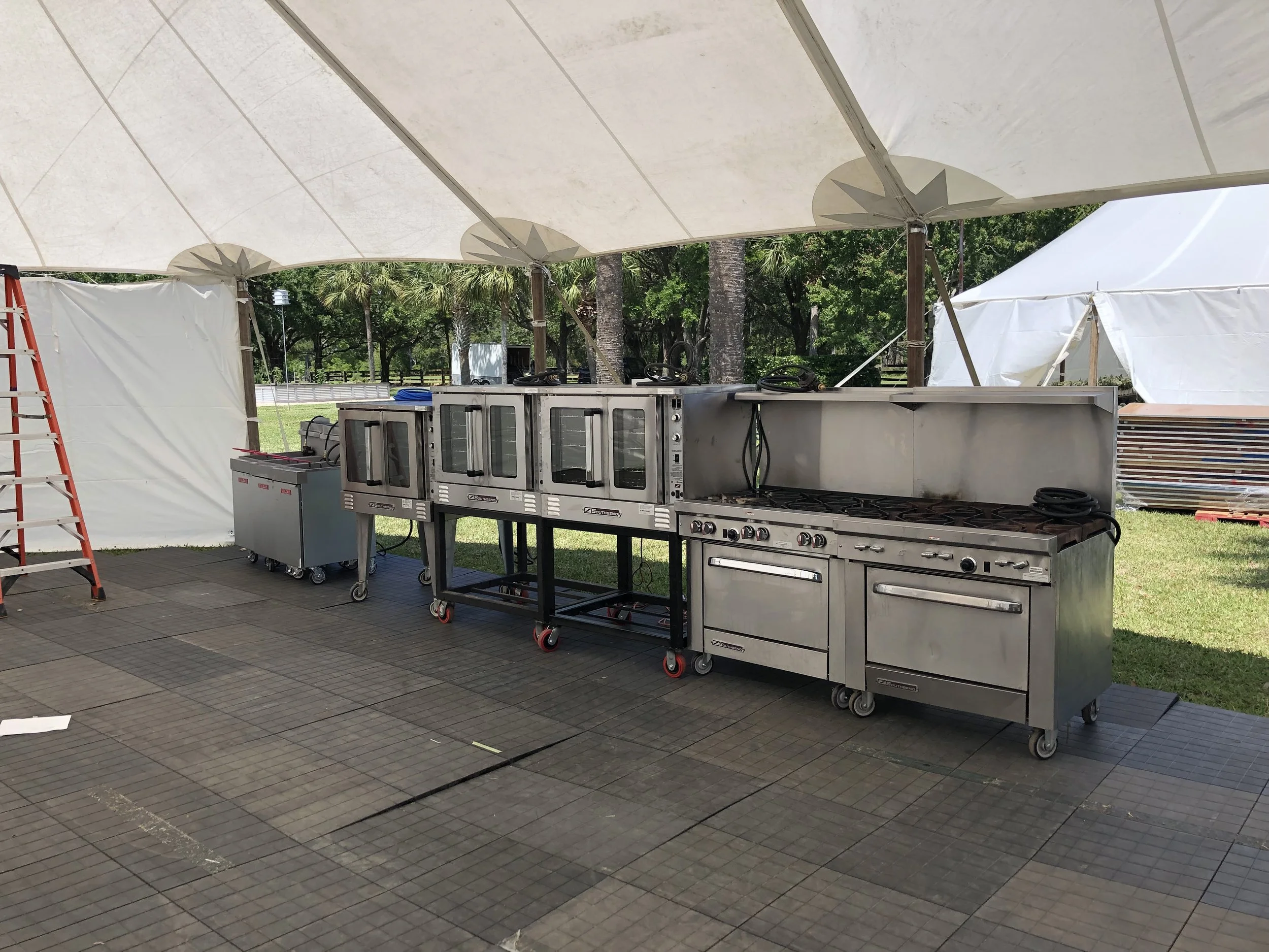 To deliver consistent results across a wide range of event environments, Event Kitchens maintains a large and diverse rental inventory of commercial-grade equipment, including convection ovens, 35 lb fryers, six-burner ranges, electric warming cabinets, griddles, and essential kitchen accessories — all selected to help chefs and crews feel right at home, wherever the event takes place.